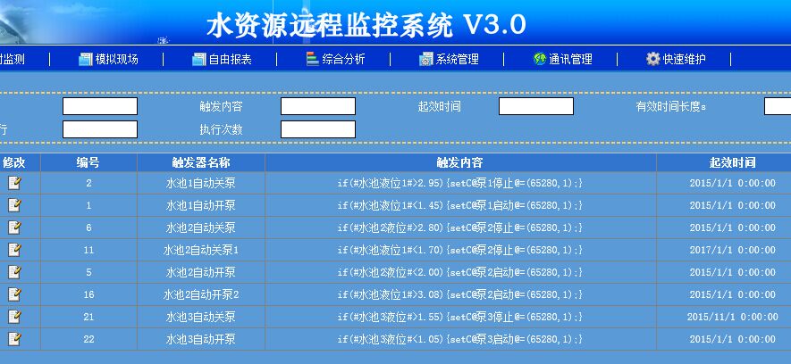 服务中心根据液位变化对水池自动进行调节,在这个项目中使用控制器实时采集液位变化然后控制器根据水池液位变化的需要自动开关水泵,完全实现了无人值守!